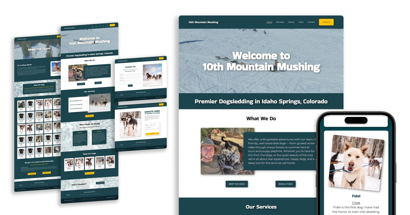 Ethan rescued a bunch dogs from a kennel that was closing and built a humane dogsledding facility where he and the pups could live together, giving them space to roam, lots of love, and tons of enrichment. He’s a professional musher (the person who raises, trains, and guides the dogsledding team) and he needed a website to advertise their seasonal services where guests could book a tour, schedule a visit to the kennel, and make donations toward the pups.