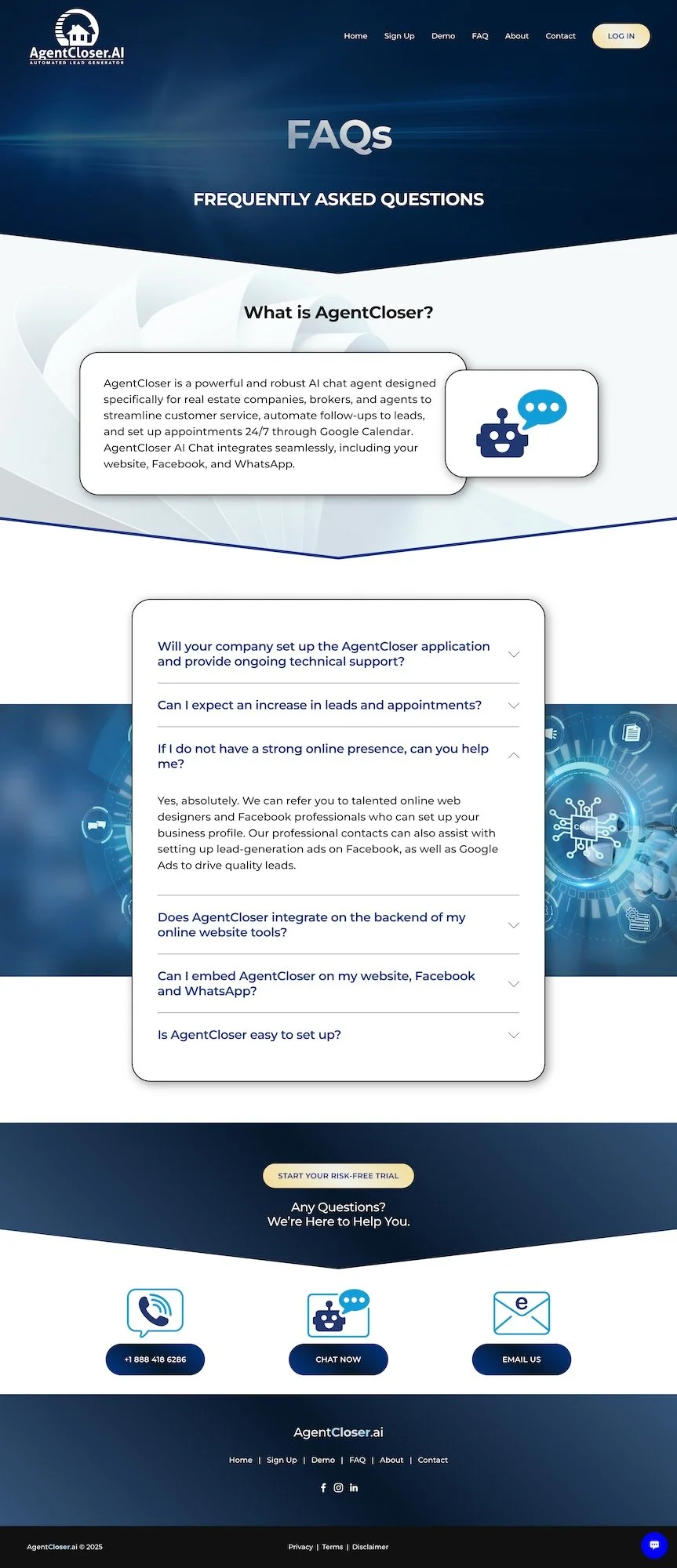 A slick website for the launch of their SaaS product. This client created an AI chat agent for the real estate industry and needed a smart and professional Squarespace website to present the startup’s feature AI software with utmost legitimacy and credibility.