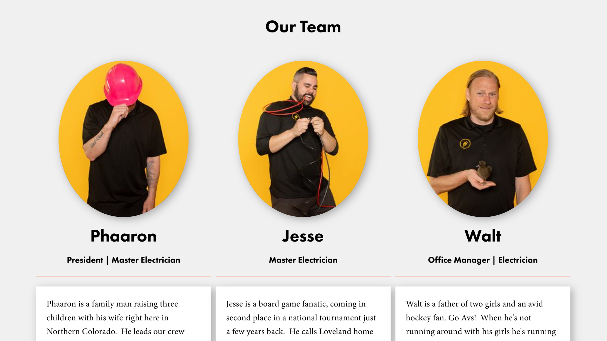 Part of my job during a redesign is to see if they’d like to keep the essence of their old site or totally revamp things. In this case, the guys at Anywhere Electric had solid branding, some great hero images, and the essential bones of the content, but they wanted design to wow and a fun user experience. Here we took the original Home page and jazzed it up a bit with: