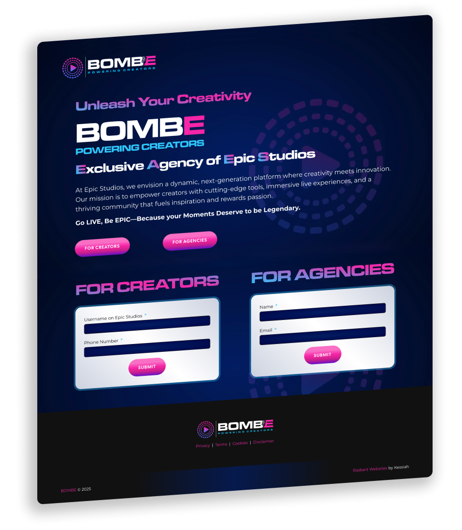 The BOMBE site needed to be two things: ridiculously simple and slick as a banana peel on an icy sidewalk. 🍌